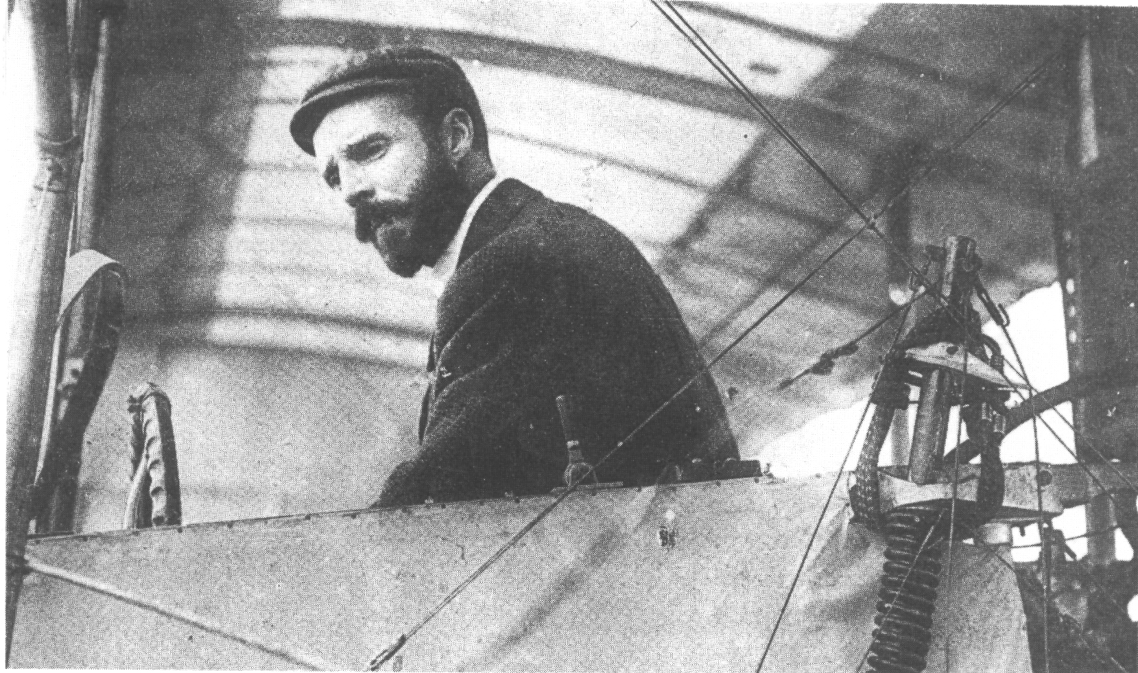 Henri Farman in his first Voisin plane in 1907. He won the Archdeacon Prize with this plane on November 9, 1907. [ larger image ]