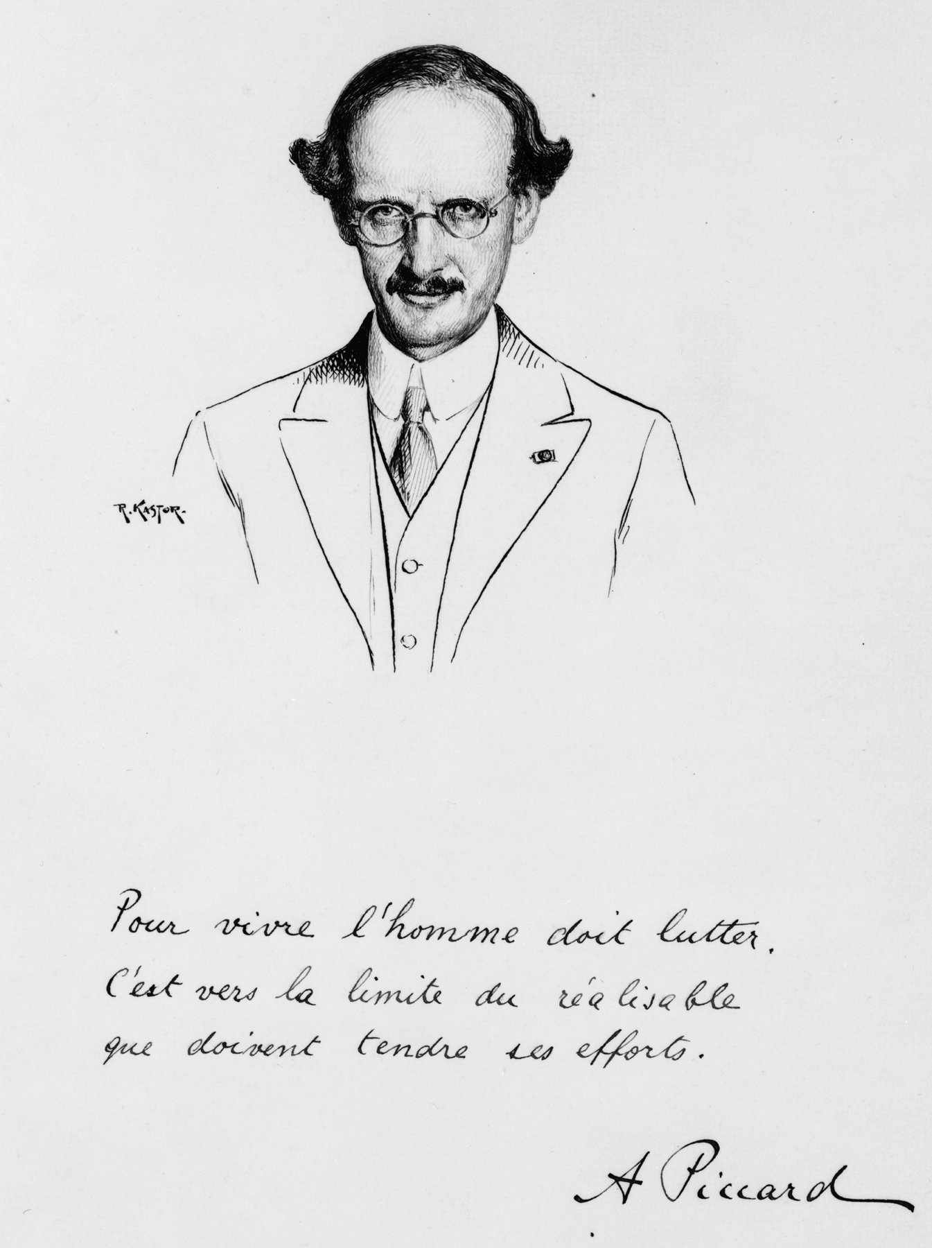 Auguste Piccard Auguste Piccard was a Swiss-born explorer who investigated both the stratosphere and the depths of the ocean. Born in Basel, Switzerland, and educated at the Federal Polytechnic School, he became a professor of physics at the University of Brussels in 1922. On May 27, 1931, with his associate Paul Kipfer, he made the first manned balloon flight into the stratosphere, lifting off from Augsberg, Germany. They set a new altitude record of 51,961 feet (15,838 meters). For this flight, he designed the first pressurized cabin, which was made of aluminum. During the flight, Piccard gathered valuable information regarding the intensity of cosmic rays in the stratosphere and also recorded a wide range of stratospheric temperatures. In 1932, Piccard and Max Cosyns climbed to an altitude of 53,139 feet (16,197 meters). Piccard made a total of twenty-seven flights before he turned to exploring the ocean bottom.