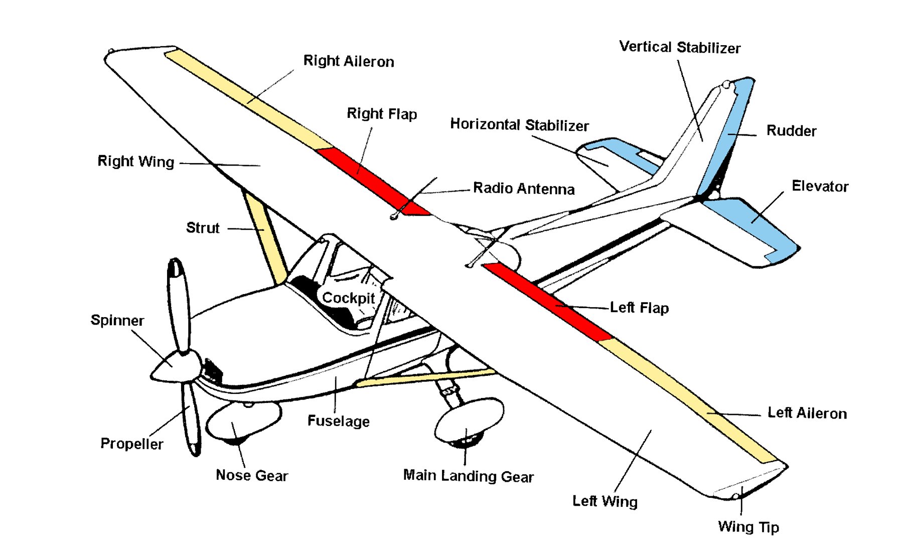 Airplane An airplane is a heavier-than-air machine that is kept aloft by the forces on its wings. It is thrust forward by a propeller or other means of propulsion, such as a jet or rocket. Common types of airplanes are airliners, large planes usually used to transport passengers; military planes; and general-aviation aircraft, which cover all airplanes that are not airliners or military aircraft. They generally are smaller than airliners and can transport people or cargo or perform a wide variety of specialized functions such as crop-dusting, flight training, and recreational flying.