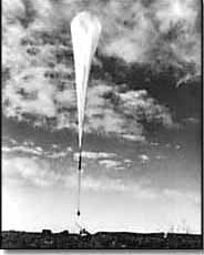 Beginning the ascent in the Excelsior III gondola. As the balloon rose into the upper atmosphere, the helium gas inside expands and fills out the envelope of the balloon. The tests were carried out over the barren terrain of New Mexico. Credits - U.S. Air Force |