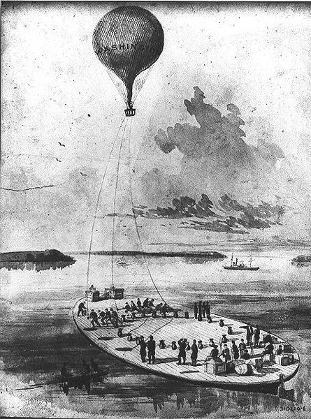 A reconnaissance balloon is launched from the coal barge George Washington Parke Curtis, during the American Civil War.