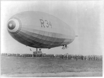 The landing of the Navy dirigible R34 at Mineola, New York, 1919. [larger image]