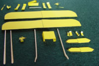 Parts shown ready to assemble. Landing skids are bent, with glue