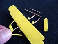 - Clip the ends off the toothpick airframe where it protrudes above the wing. If the glue comes loose from the wing or the landing skid below, re-glue, using plenty of glue for this application only. Allow the TA Kitty Hawk Flyer to dry before tuning.